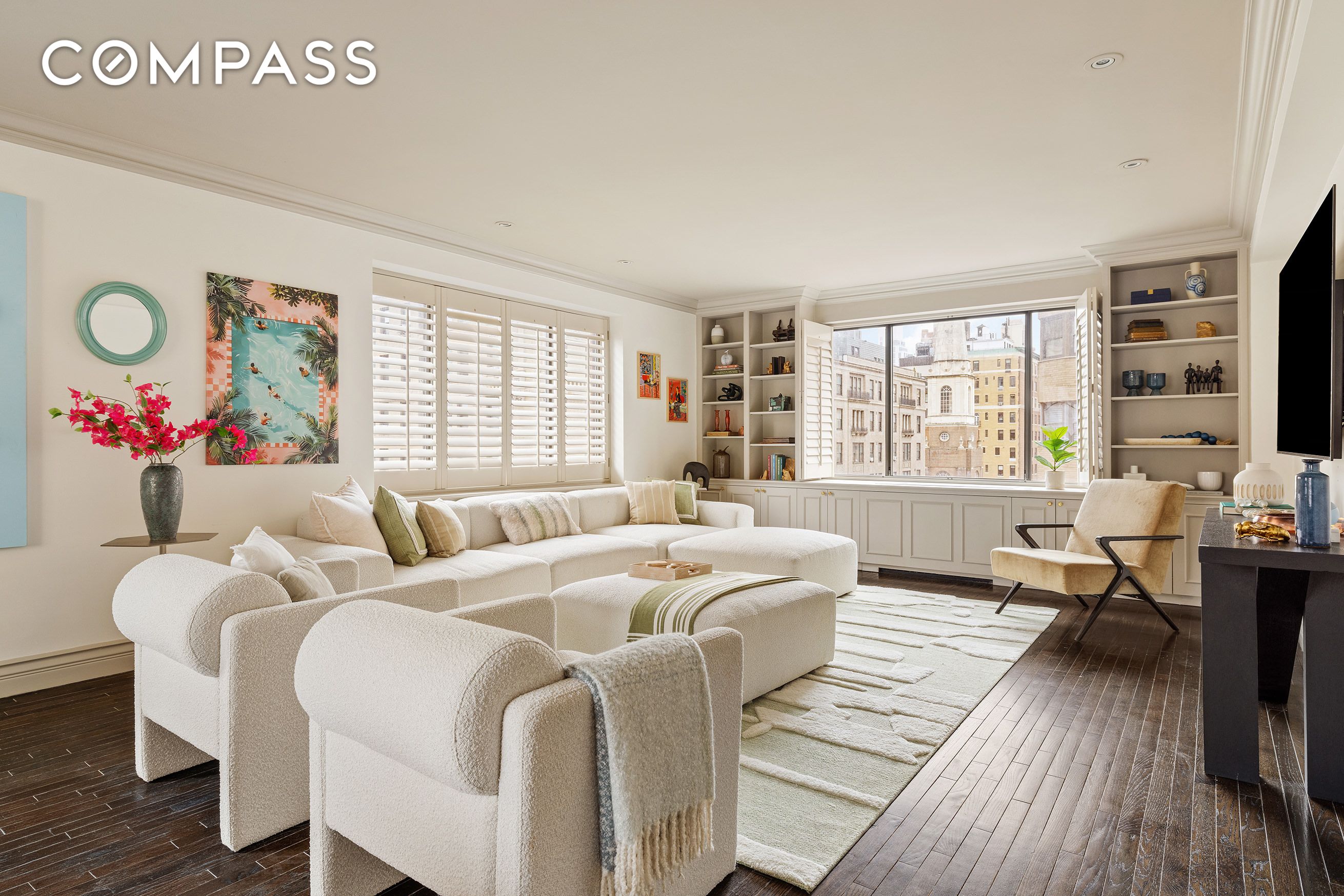 131 East 81st Street, Unit 9 offers luxury living in this massive 2 bedroom, 2 bath located in an Upper East Side, keyed elevator boutique co-op with a rare blend of classic New York charm and modern sophistication. The residence features an expansive living room/dining room with sun-drenched south, east and north exposures; wood shutters over wide picture windows, hardwood floors throughout, and high ceilings with recessed lighting.